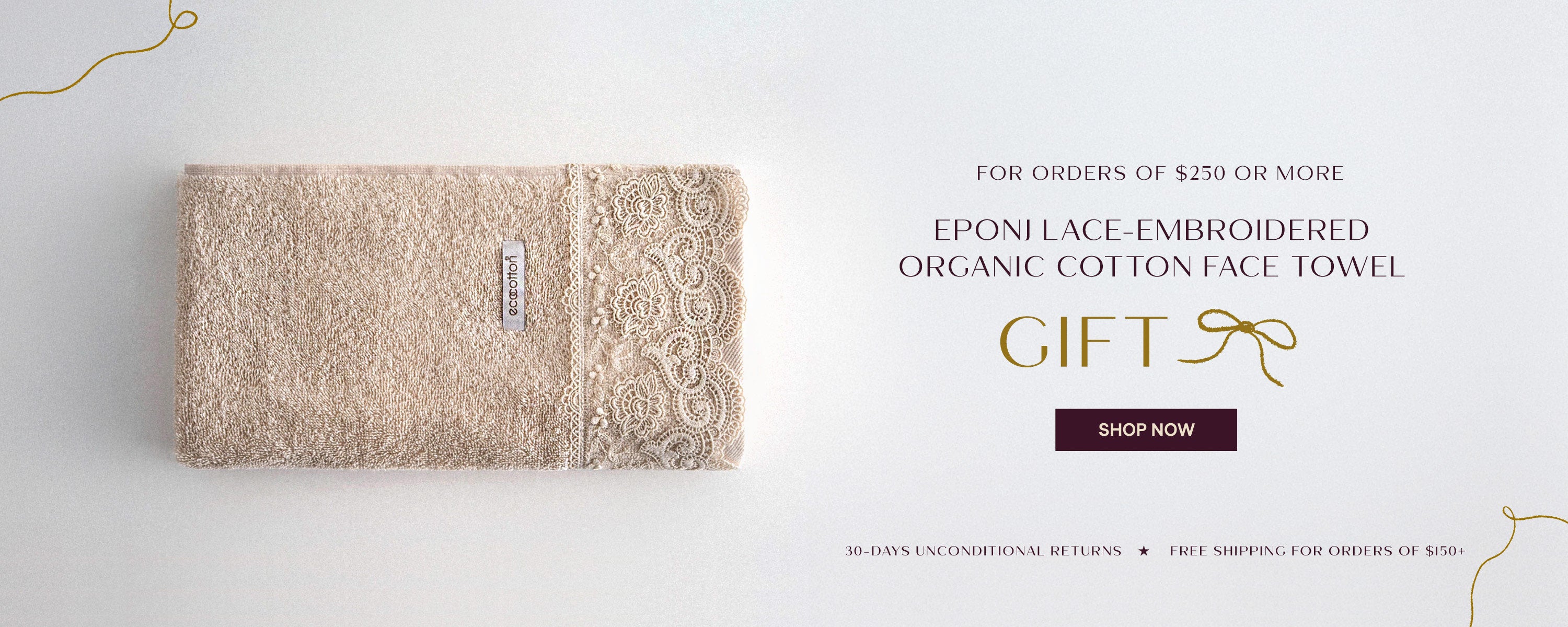 For orders $250+, get a free Eponj lace-embroidered organic cotton face towel.